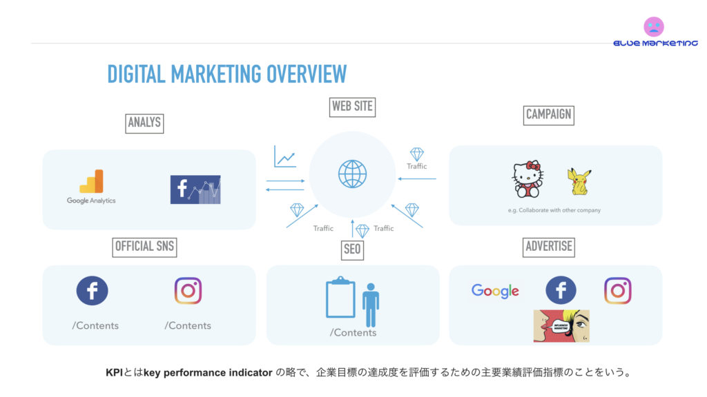こちらの図はWEBサイトを軸にしたデジタルマーケティング全体像です。