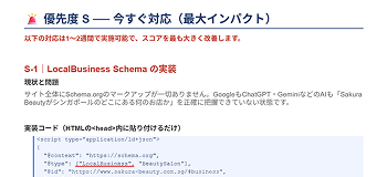 • 優先度別の改善項目(S / A / B の3段階)