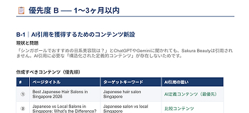 広告診断と同時に、貴社サイトの「SEO」と「AI検索への対応状況」もWordレポートにまとめてお届けします。ChatGPT・Google Geminiなどの生成AIで検索する人が急増している今、サイトがAIに正しく認識・引用されているかどうかは、集客に直結する問題になっています。